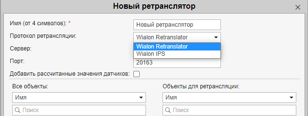 " Если на транспортном средстве установлено ГЛОНАСС оборудование, но оно не поддерживает данные протоколы, то можно настроить «EGTS ретранслируемый из информационной системы»