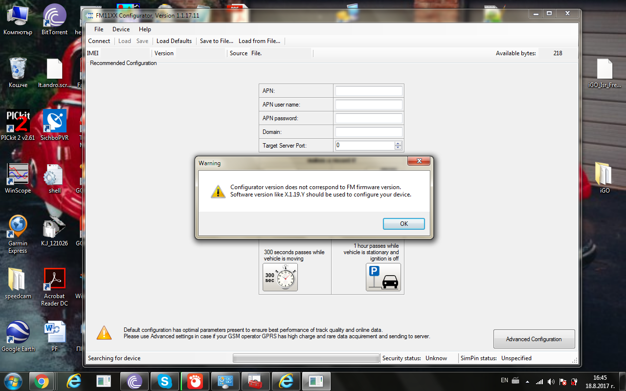 Здраствуйте ,у меня fm1110 и не магу конфигурирават.Кагда свержу к ПК палуча ето