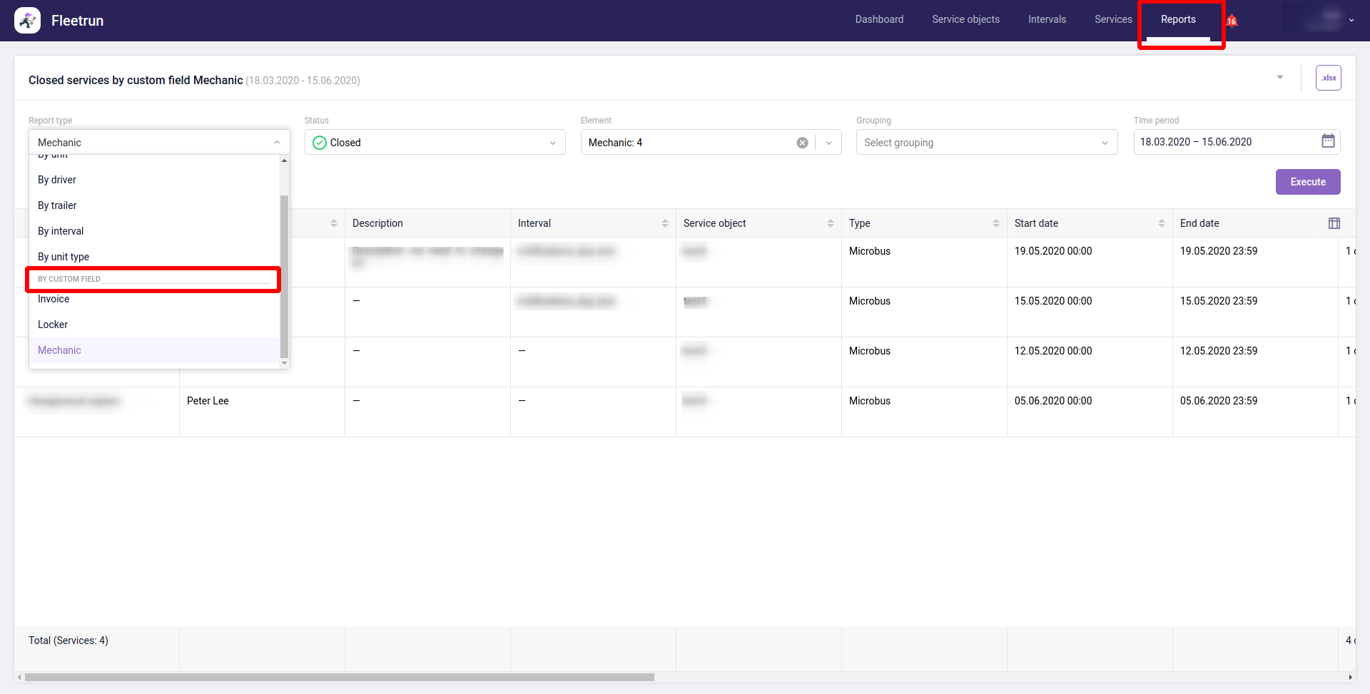 Also, you will be able to export services with custom fields to .csv file if you need them to analyze out of Fleetrun.