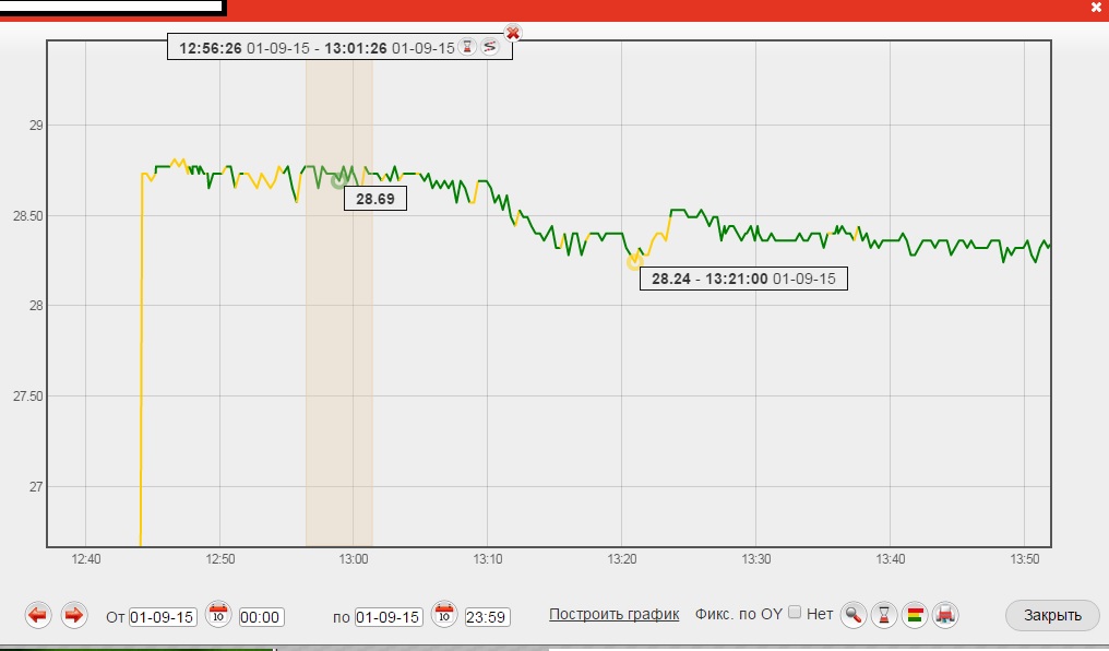 При выключенном зажигании уровень топлива то падает то поднимается машины стоят на стоянке.3 машины daf 105 xf свежие с 2 баками каждая.Если включить зажигание то скачки пропадают.Прикрепляю фото графика.Установка была на новые блоки и новые ДУТ.Установлены 6 датчиков на 3 машины.